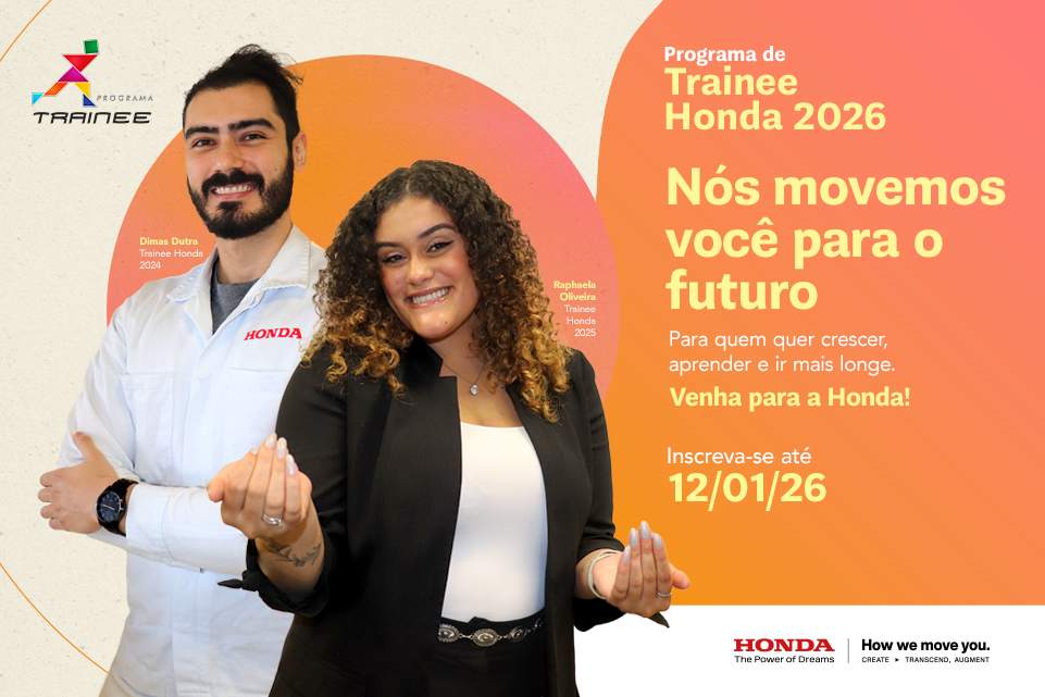 As inscrições para o processo seletivo, que acontece em parceria com a Cia de Talentos, seguem abertas até o dia 12 de janeiro de 2026. Os interessados devem acessar o link Globe | Programa de Trainee Honda 2026 para conferir todos os detalhes do programa. Os aprovados iniciarão as atividades em abril de 2026.